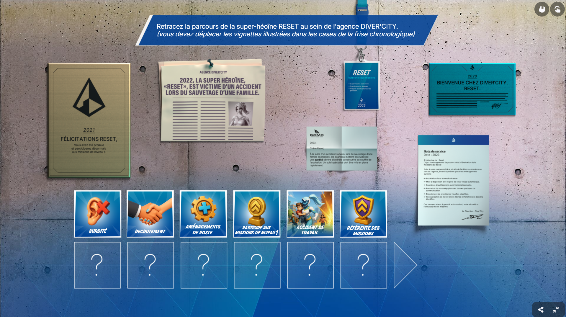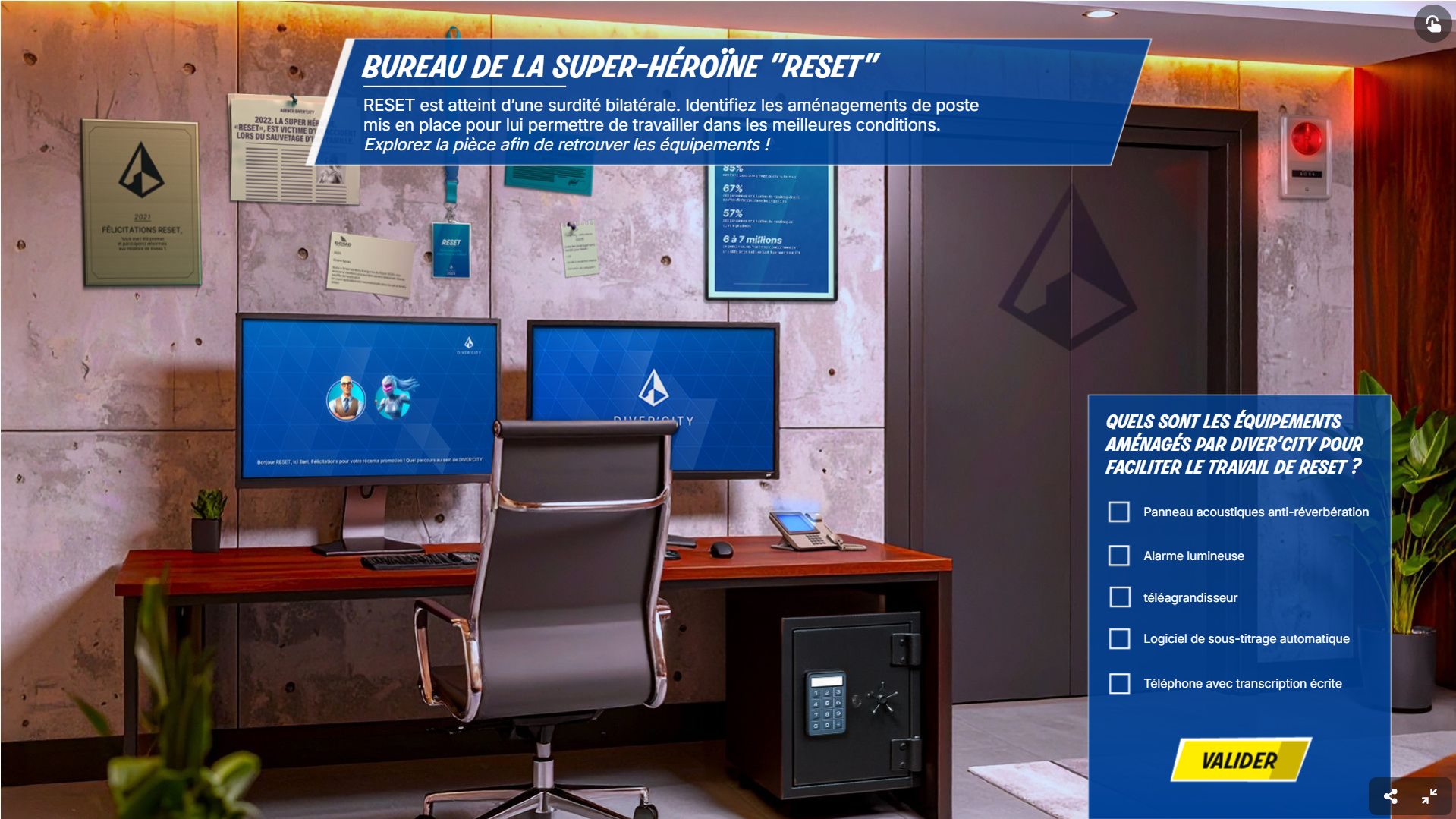 Avec Diver’City, Coopéria transforme cette thématique en une expérience digitale immersive et marquante. Ce serious game digital permet de fédérer vos équipes et de sensibiliser vos collaborateurs aux différentes formes de handicap, qu’elles soient visibles ou invisibles, tout en restant accessible à tous.