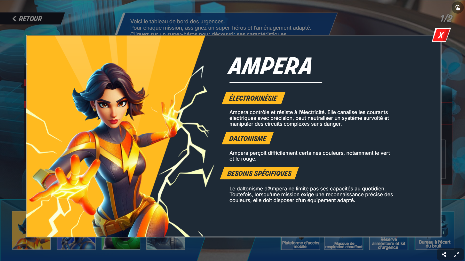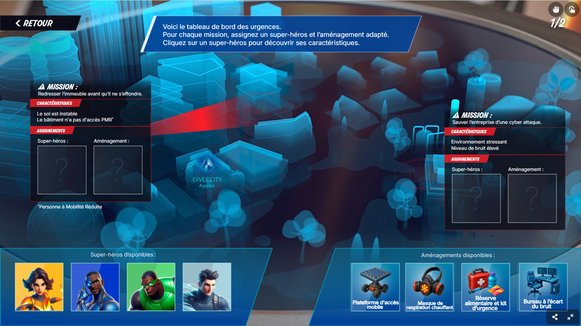 C’est votre premier jour en tant que responsable des missions des super-héros. Vous venez tout juste d’enfiler votre badge, à peine le temps de faire un café…Et soudain : ALERTE ! Plusieurs crises éclatent aux quatre coins de la ville. L’agence est en ébullition. Les super-héros sont prêts… mais c’est à vous de composer les équipes.